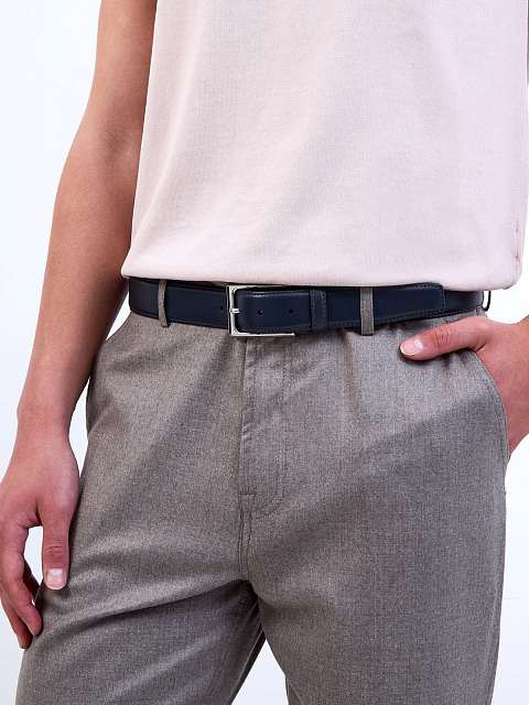 Кожаный ремень с литой пряжкой и прострочкой в тон