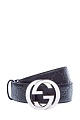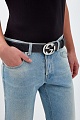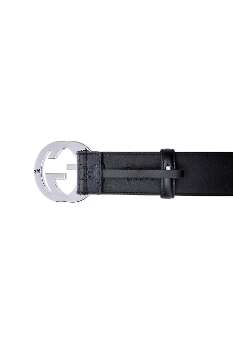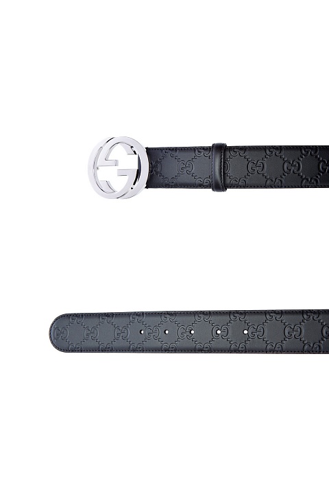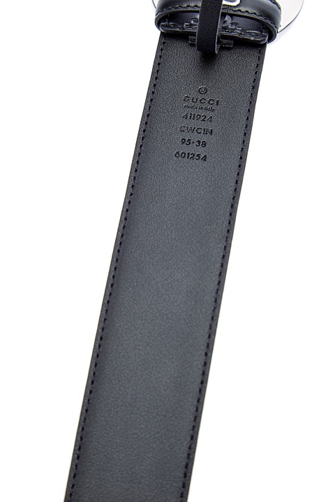 Классический мужской ремень от Gucci выполнен из матовой кожи в черном цвете с культовым тисненым узором GG. Образ в фирменном стиле дополнен массивной литой пряжкой стального цвета и застежкой на штифт. Ширина 4 см. Сделано в Италии.