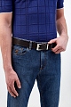 Ремень ручной работы от Moreschi. Аксессуар выполнен из матовой кожи, перфорированный узор подчеркивает внутренний окрашенный слой на срезах. Литая прямоугольная пряжка придает образу строгость. Детали: регулируемая длина, петля-фиксатор. Сделано в Италии.