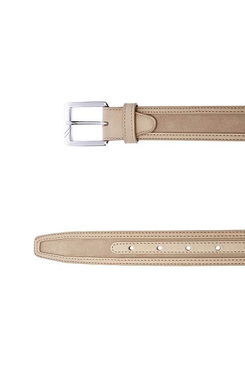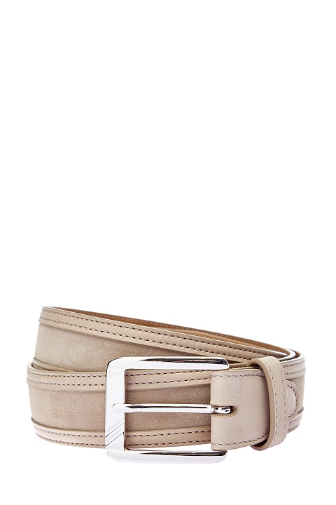 Ремень ручной работы от Moreschi выполнен из бархатистой замши. Аксессуар создан в универсальном бежевом оттенке и органично дополнит любой летний образ. Отделка из контрастной по фактуре полированной кожи вносит динамику. Детали: регулируемая длина, литая пряжка геометрической формы. Сделано в Италии.