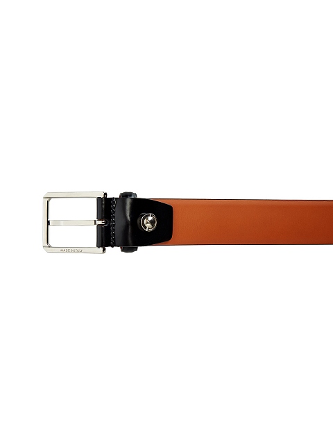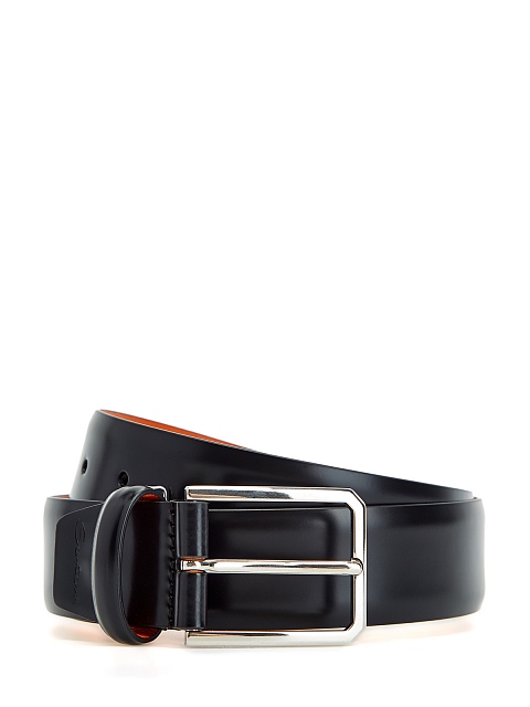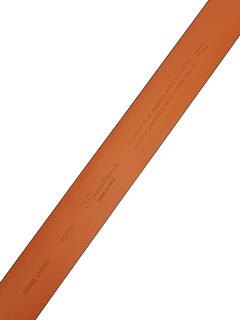 Классический мужской ремень от Santoni создан мастерами бренда вручную из гладкой кожи с эффектом полировки. Яркая внутренняя поверхность в оранжевом цвете подчеркивает фирменный стиль изделия. Детали: литая фурнитура, традиционная застежка с пряжкой, зауженный край. Сделано в Италии.