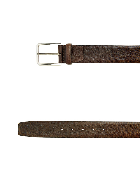 Ремень из фактурной кожи с тиснением и эффектом патины