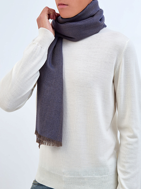 Двусторонний кашемировый шарф с волокнами шелка и бахромой