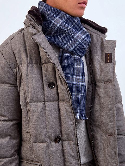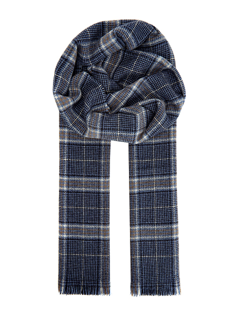 Клетчатый шарф ручной работы из кашемира в синей гамме