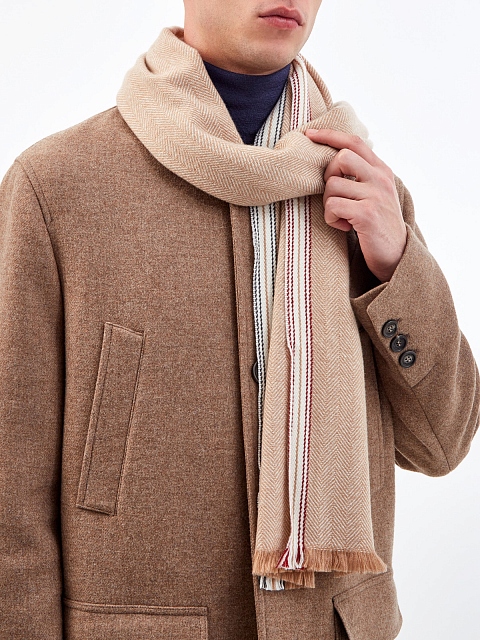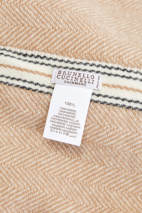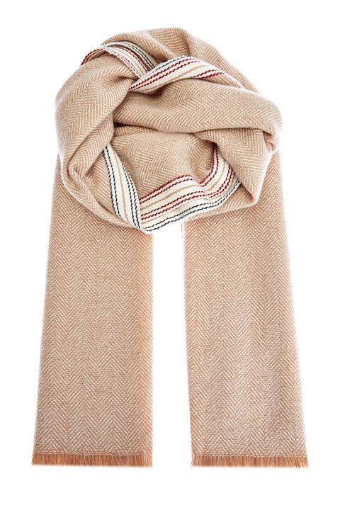 Изысканный шарф из благородного кашемира от Brunello Cucinelli создан в нейтральном песочном оттенке. Благодаря ценным свойствам натуральных волокон аксессуар обеспечивает комфорт и защиту от низких температур. Цветовой акцент в образ вносит контрастная полоса с деликатной прострочкой швов. Короткая бахрома завершает узкие кромки изделия. Сделано в Италии.