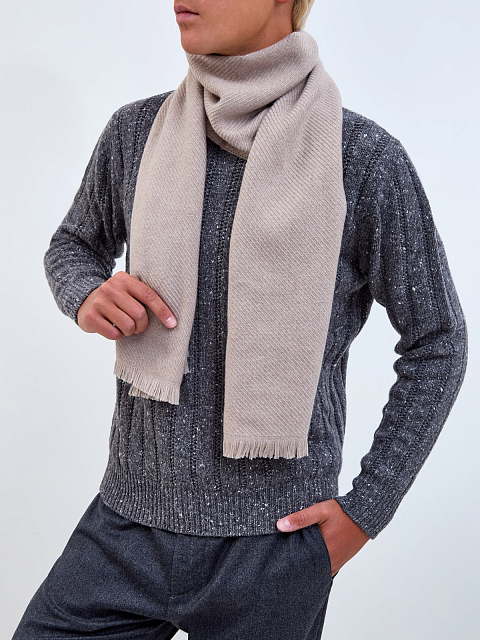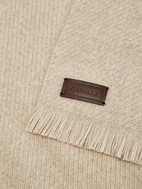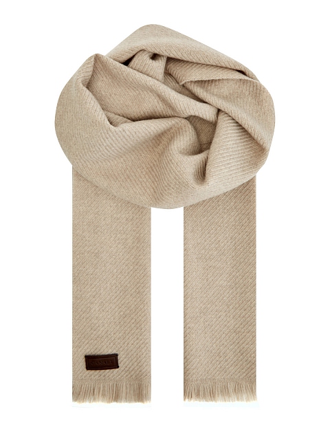 Шерстяной шарф с бахромой и нашивкой из кожи