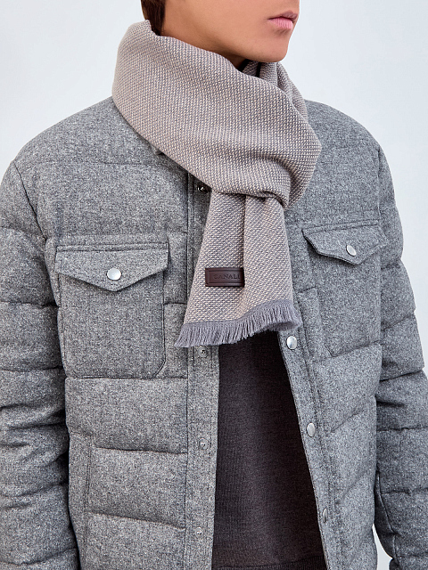 Теплый шарф из шерсти и кашемира с кожаной нашивкой