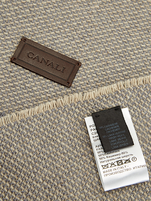 Мужской шарф от Canali выполнен из мягкой шерсти и кашемира, переплетение волокон серого и бежевого оттенков придает поверхности объемный эффект. Благодаря полностью натуральному составу аксессуар сохраняет тепло и защищает от ветра. Фирменный штрих — нашивка из кожи с брендированным тиснением. Короткая бахрома на кромках завершает дизайн. Сделано в Италии.