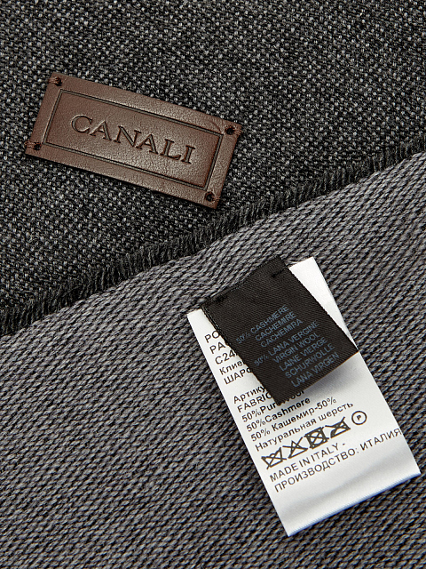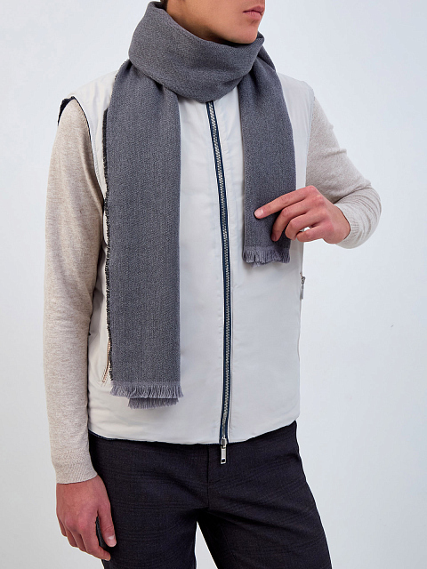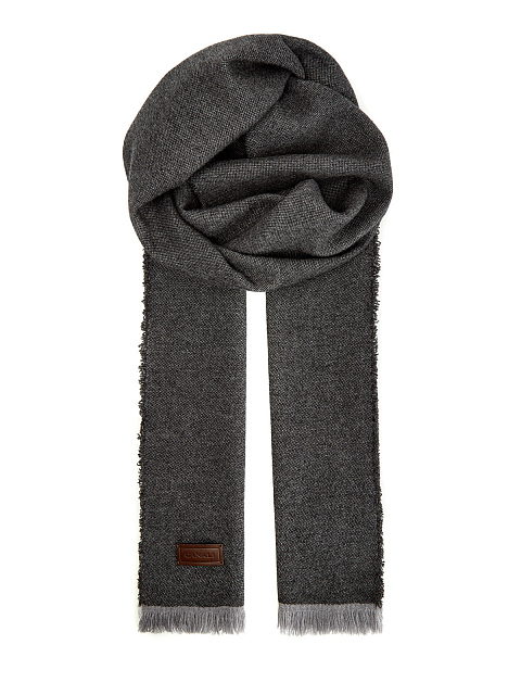Шарф из кашемира и шерсти в серой гамме с кожаным патчем