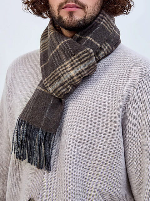 Шарф из фактурной шерсти в клетку с длинной бахромой