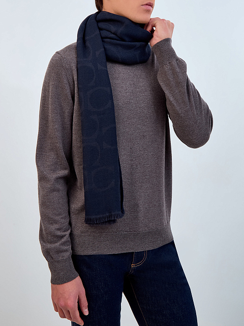 Шарф из шерсти и шелка с жаккардовой монограммой и патчем