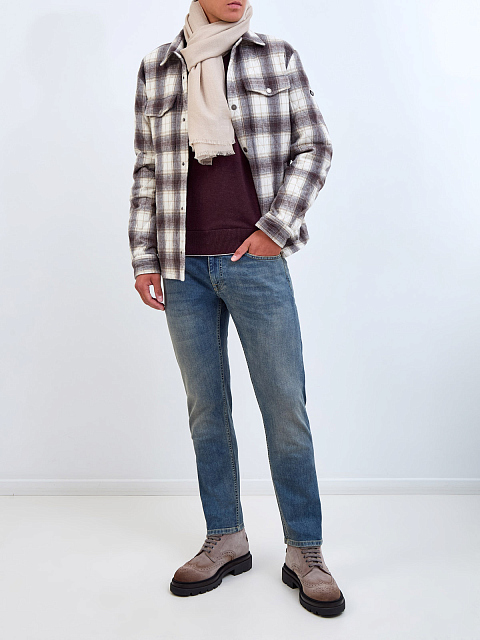 Мужской шарф в бежевом оттенке от Eleventy создан из премиального кашемира и шелка. Благодаря свойствам ценных волокон аксессуар обеспечивает комфорт и защиту от низких температур. Короткая бахрома завершает узкие кромки изделия. Сделано в Италии.