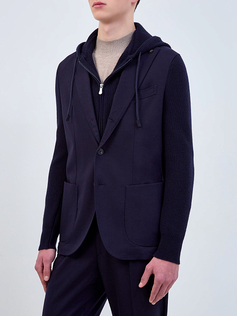 Спортивный пиджак-трансформер из шерсти с капюшоном
