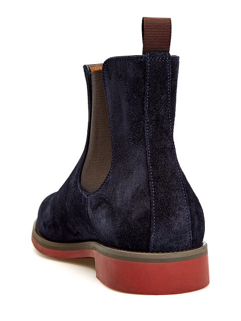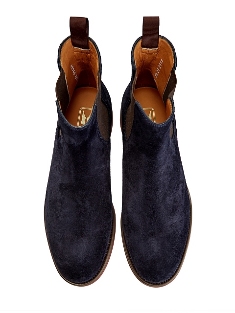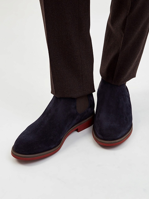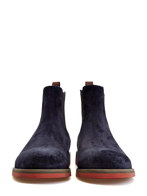 Минималистичные ботинки-челси ручной работы от Moreschi. Модель выполнена из бархатистой замши в оттенке ночного неба — благодаря своим свойствам, материал хорошо сохраняет тепло. Яркая подошва с фактурным рисунком протектора предотвращает скольжение. Эластичные вставки по бокам позволяют быстро снимать и надевать обувь. Сделано в Италии.