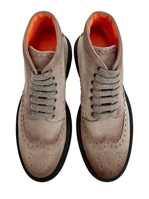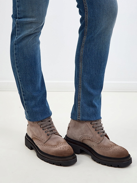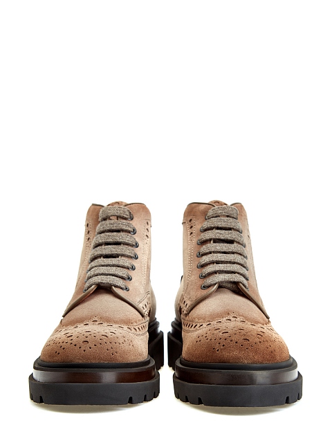 Ботинки из окрашенной вручную замши с узорной перфорацией