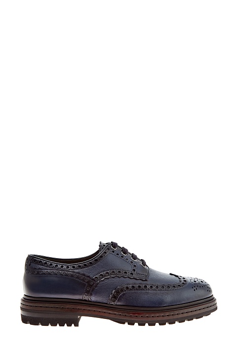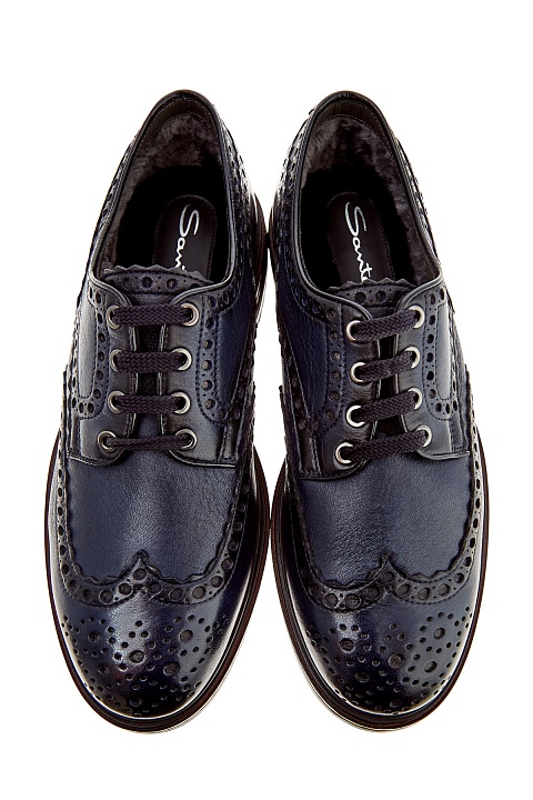 Утепленные броги от Santoni выполнены вручную из гладкой кожи в темно-синем оттенке. Выполненное вручную окрашивание с затемнением придает линиям объемный эффект. Массивная подошва с фактурным протектором препятствует скольжению. Дизайн, навеянный классикой английского стиля, подчеркнут аутентичной перфорацией и фигурными срезами. Внутренняя отделка из меха обеспечивает максимальный комфорт в холодное время года. Сделано в Италии.