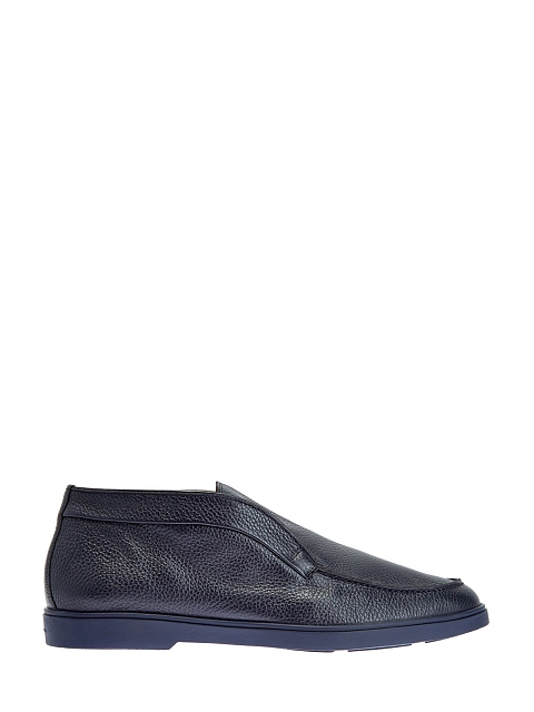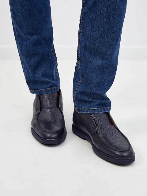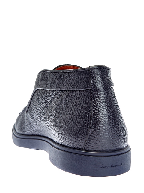 Минималистичные мужские ботинки от Santoni выполнены из крупнозернистой телячьей кожи в оттенке индиго. Модель сочетает фактурные швы в расслабленном стиле с классическим дизайном. Литая подошва из каучука препятствует скольжению. Детали: внутренняя подкладка из кожи, миндалевидный мысок. Сделано в Италии.
