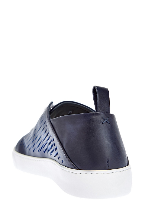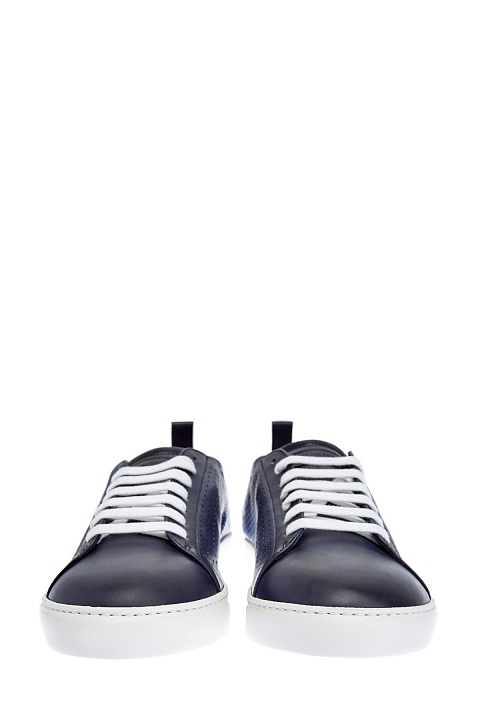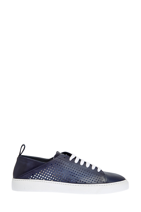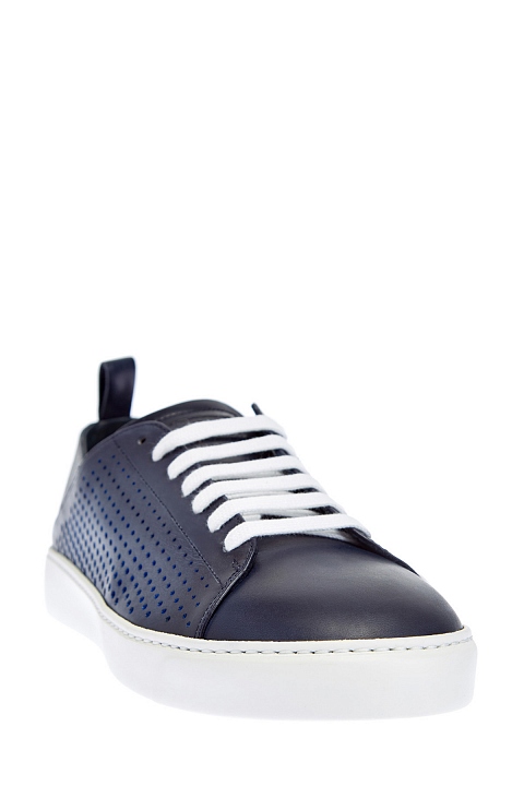 Мужские кеды в темно-синем цвете от Barrett входят в эксклюзивную коллекцию Blu Barrett, разработанную для поклонников активного образа жизни. Для создания модели была выбрана полированная мелкозернистая кожа. Крупная перфорация на боковых панелях обеспечивает максимальный комфорт в жаркий летний сезон. Особая конструкция спинки позволяет надевать изделие двумя способами. Динамику образу придает контрастная шнуровка и белая литая подошва. Детали: простроченный рант, нашивка с тисненым логотипом на язычке, внутренняя поверхность из перфорированной кожи. Сделано в Италии.