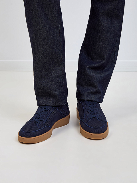 Кеды из сетчатого текстиля с фактурным вышитым кантом