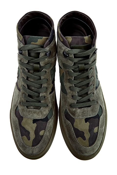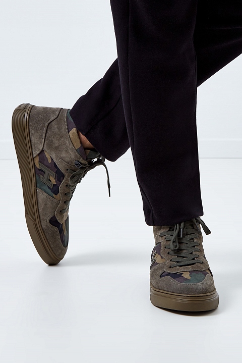 Высокие кеды с камуфляжным принтом и замшевыми вставками