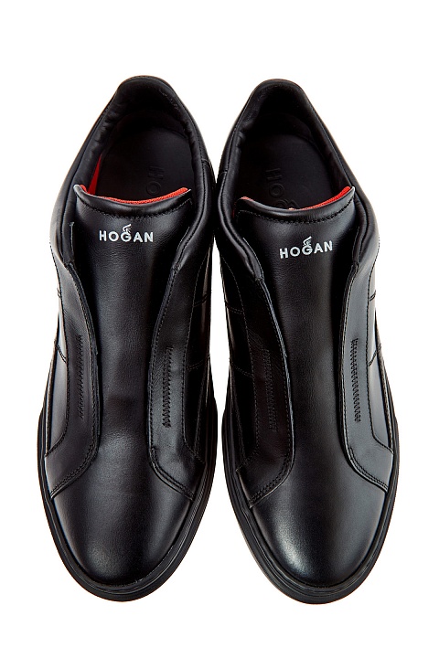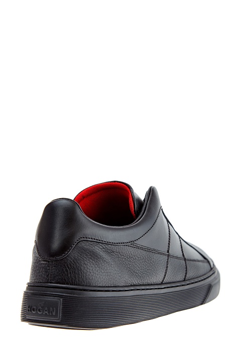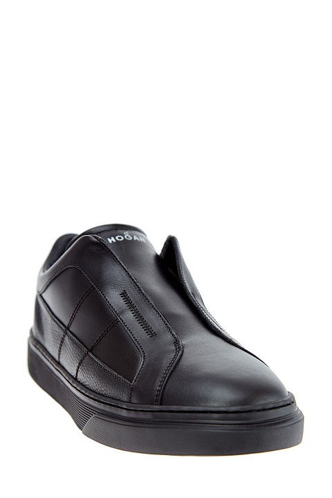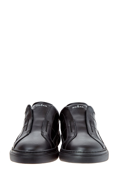 Низкие мужские кеды от Hogan сочетают элементы из гладкой и крупнозернистой кожи в черном цвете. Модель без шнуровки дополнена эластичными вставками, которые позволяют быстро снимать и надевать модель. Декоративные строчки на боковых панелях образуют логотип бренда. Детали: внутренняя мембранная отделка, массивная литая подошва, закругленный мысок.