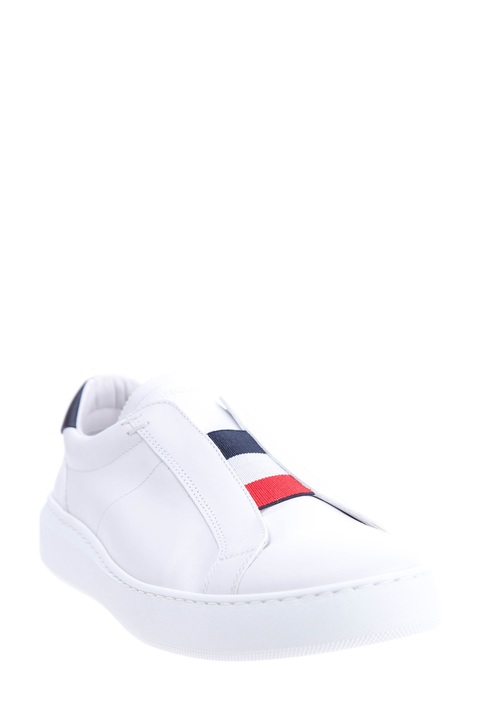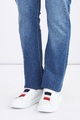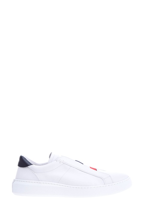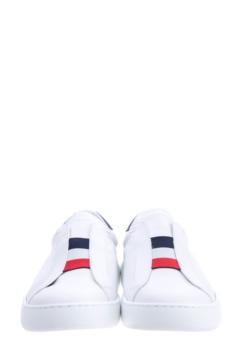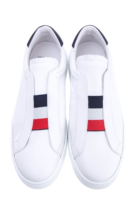 Лаконичные мужские кеды из весенне-летней коллекции Moncler созданы из мягкой кожи гладкой выделки в базовом белом цвете. Модель с оригинальной интерпретацией шнуровки оснащена эластичной вставкой в фирменных синих, алых и белых тонах, а также декорирована контрастной вставкой на заднике. Язычок дополнен тисненой монограммой бренда. Дышащая кожаная стелька и массивная подошва завершает образ в стиле casual.