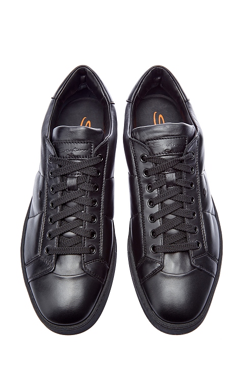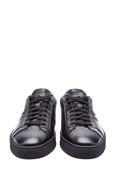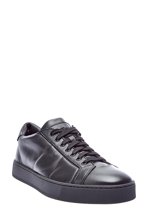 Минималистичные черные кеды от Santoni выполнены из окрашенной вручную гладкой кожи. Культовая модель бренда с динамичными линиями, которые подчеркнуты стегаными строчками. Легкая подошва в тон обеспечивает амортизацию и не перегружает образ. Детали: миндалевидный мысок, внутренняя отделка из кожи, мягкая набивка манжеты для комфортной посадки. Сделано в Италии.