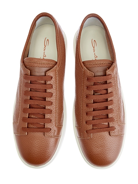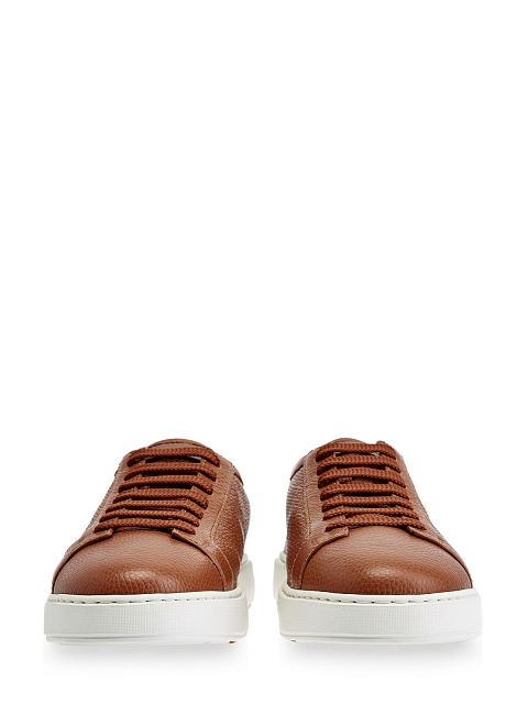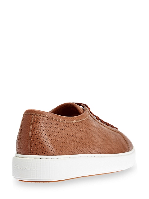 Однотонные мужские кеды-carryover от Santoni выполнены из мягкой крупнозернистой кожи в каштановом оттенке. Особенностью модели стала перфорация в лазерной технике, литая контрастная подошва вносит в образ динамичный штрих. Детали: противоскользящий протектор, внутренняя кожаная отделка, шнуровка в тон. Сделано в Италии.