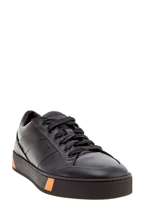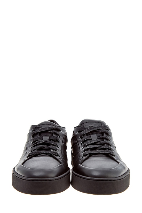 Мужские кеды от Santoni выполнены из матовой гладкой кожи. Культовая модель бренда представлена в универсальном черном цвете и дополнена яркими акцентами на литой подошве. Мягкие манжеты созданы в хвойном зеленом оттенке и обеспечивают комфорт. Детали: закругленный мысок, внутренняя отделка из кожи. Сделано в Италии.