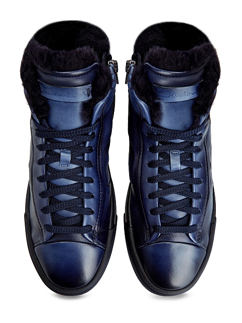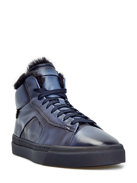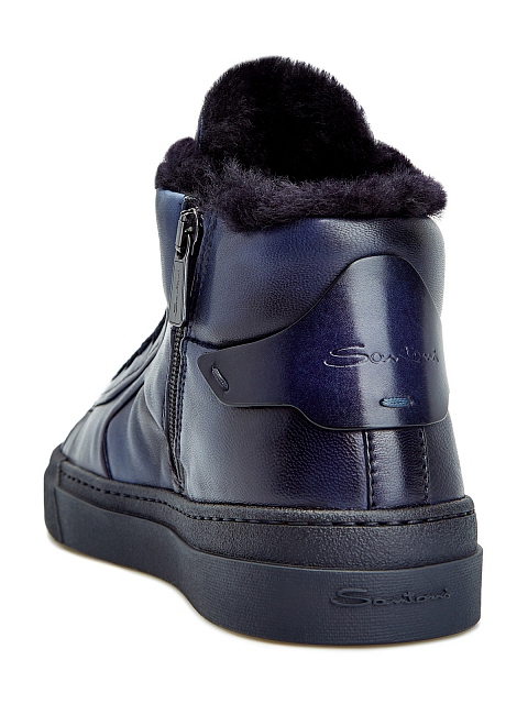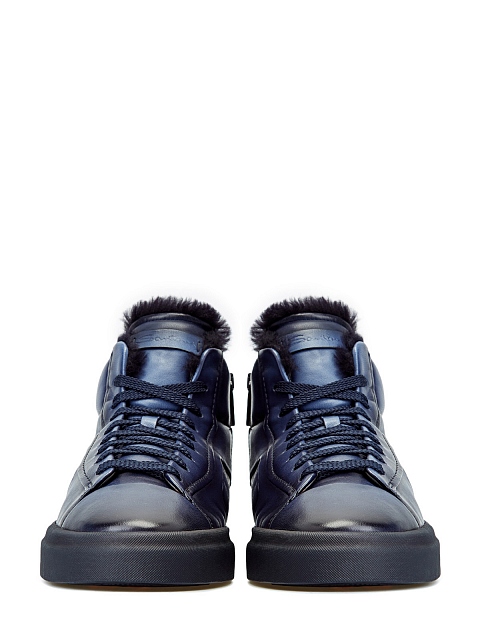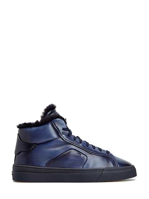 Высокие мужские кеды от Santoni выполнены из телячьей кожи с матовым блеском. Окрашивание с эффектом патины выполнено вручную, что делает каждую пару уникальной, литая подошва в тон обеспечивает амортизацию и не перегружает образ. Детали: внутренняя подкладка из теплого меха, тисненый логотип, мягкая набивка манжеты для комфортной посадки. Сделано в Италии.