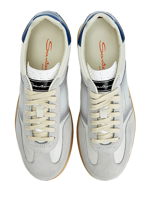 Комбинированные кеды DBS Oly от Santoni сочетают мягкую крупнозернистую кожу и отделку из замши. Модель в стиле обуви для тенниса 70-х годов добавит неформальный акцент вашему образу. Эффектный штрих — вставка из гладкой кожи на спинке и боковые детали в технике velatura. Сделано в Италии.