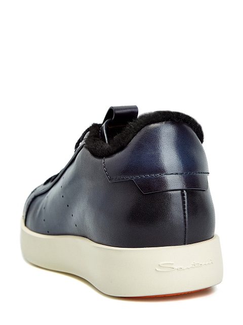 Стильные мужские кеды от Santoni созданы из гладкой телячьей кожи, окрашивание ручной работы с эффектом патины делает каждую модель уникальной. Обувь с внутренней отделкой из густой овчины станет идеальным дополнением повседневных образов в холодное время года. Контрастная литая подошва и тисненый логотип бренда завершают лаконичный дизайн. Сделано в Италии.