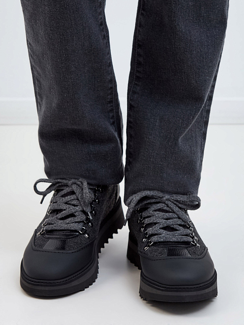Комбинированные кроссовки из шерсти и кожи с вязаной отделкой
