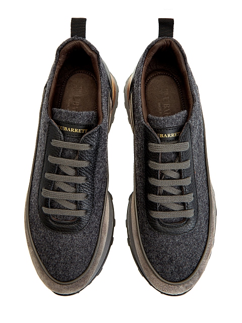 Кроссовки из замши и плотной шерсти с кожаной отделкой