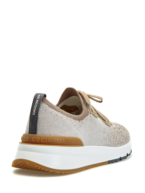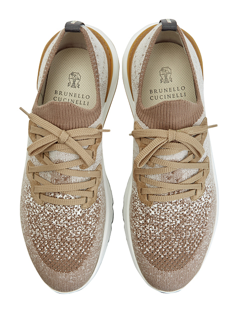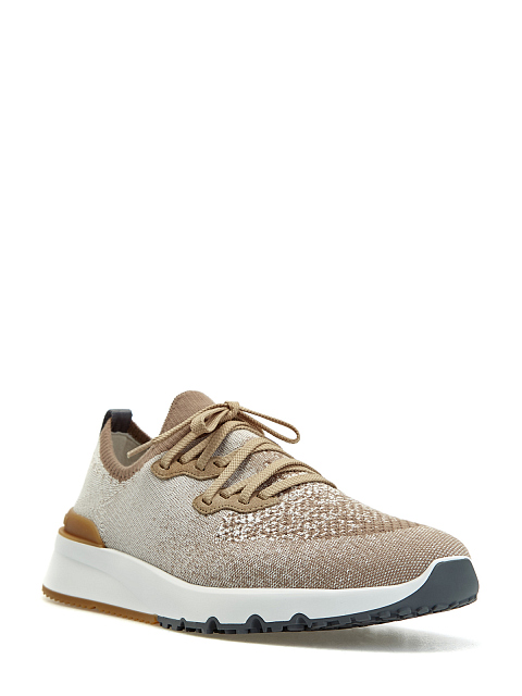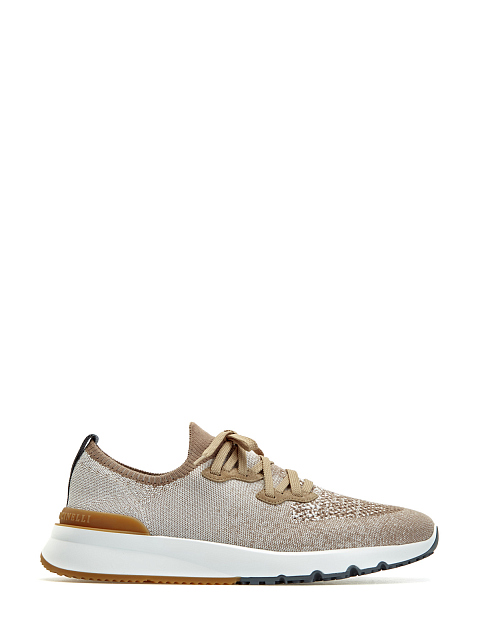Мужские кроссовки из линии Active от Brunello Cucinelli созданы в бежевой гамме с меланжевым эффектом. Модель из эластичной хлопковой пряжи легко снимать и надевать благодаря эластичным манжетам. Перфорированный мысок и мягкая внутренняя отделка обеспечивают максимальный комфорт, а протектор с рельефным узором предотвращает скольжение. Сделано в Италии.