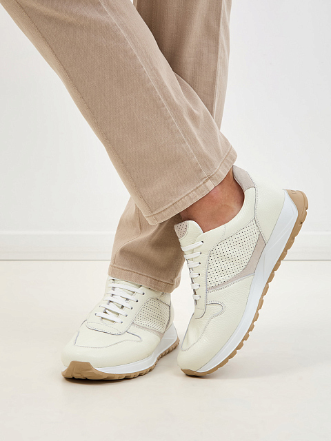 Кроссовки из мягкой крупнозернистой кожи и замши с перфорацией