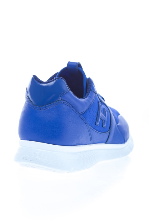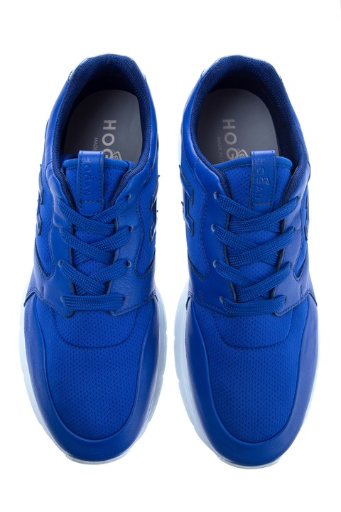 Яркие мужские кроссовки Traditional 20.15 из коллекции Hogan изготовлены из гладкой телячьей кожи и сетчатого текстиля в насыщенно-синей гамме. Модель характеризуется особой подошвой контрастного тона с фирменным тиснением. Боковые берцы украшены брендовой символикой и соединены функциональной шнуровкой.