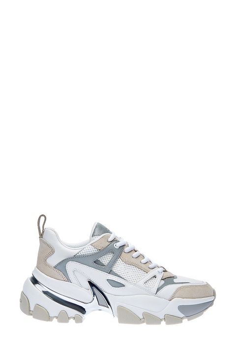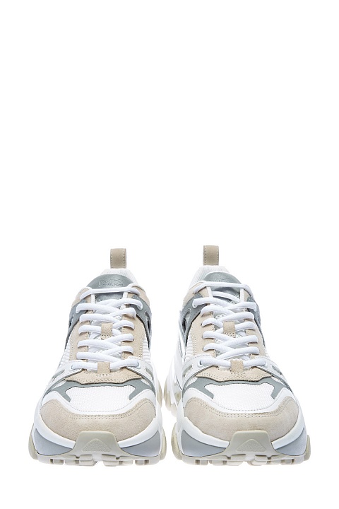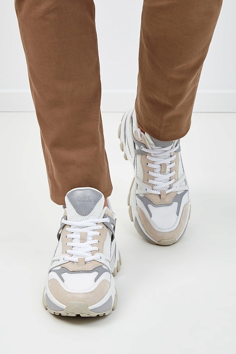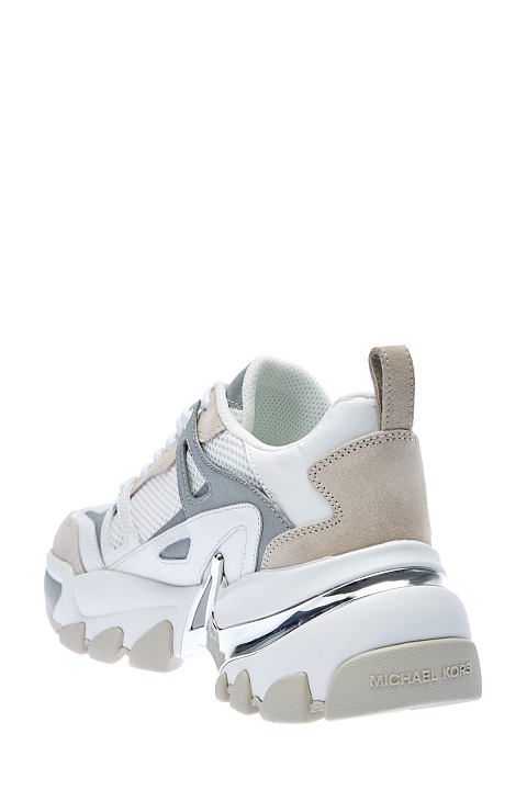 Динамичные мужские кроссовки Nick от Michael Kors выполнены из кожи Vachetta, замши и дышащей мембраны. Модель на массивной подошве 6 см с рельефными линиями ранта. Светоотражающая отделка органично дополняет универсальную кремово-белую гамму. Рифленый рисунок протектора сохраняет надежное сцепление с поверхностью. Детали: хромированная отделка, длина по стельке в размере 9.5 составляет 28 см.