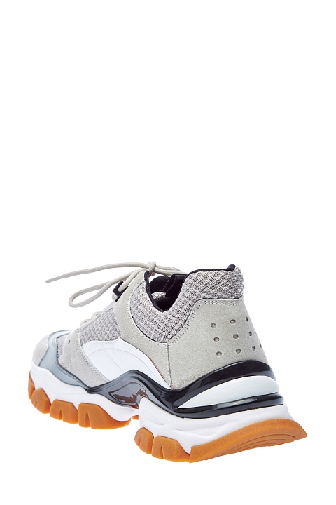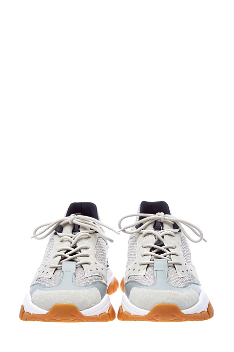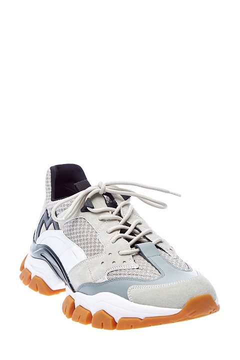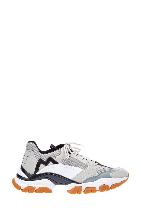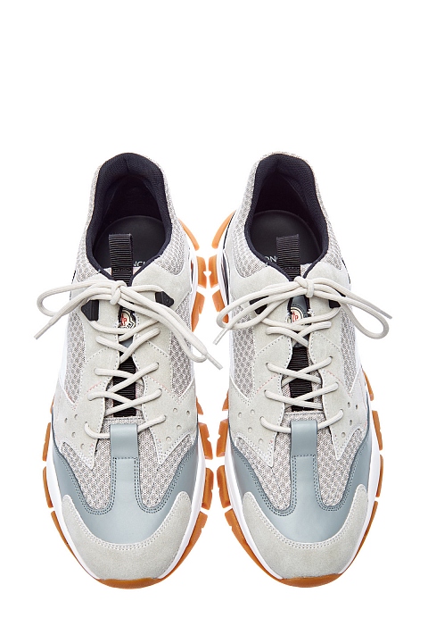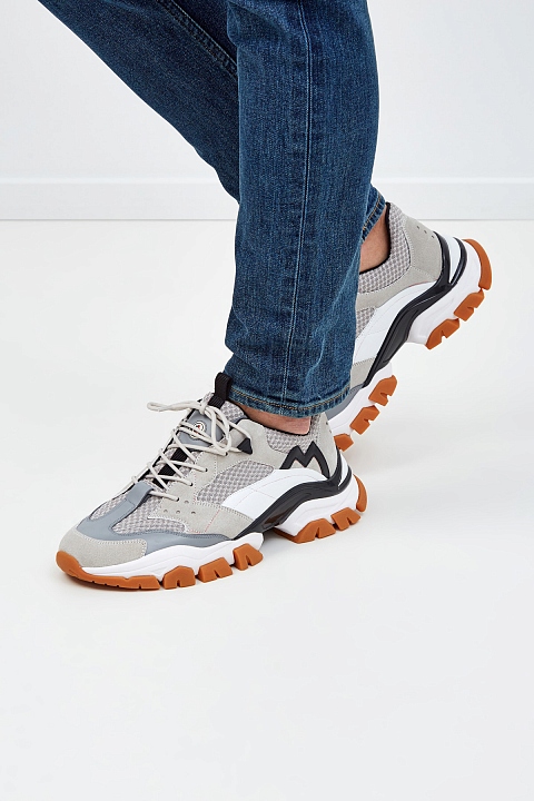 Кроссовки Leave No Trace от Moncler вдохновлены обувью для треккинга. Сегментированная амортизирующая подошва с глянцевой отделкой равномерно распределяет нагрузку, обеспечивая комфорт. Динамичный образ создают элементы из дышащей мембраны Ripstop и телячьей кожи. Детали: символика в виде буквы «М», логотип на язычках, треккерская шнуровка, внутренняя отделка из кожи.