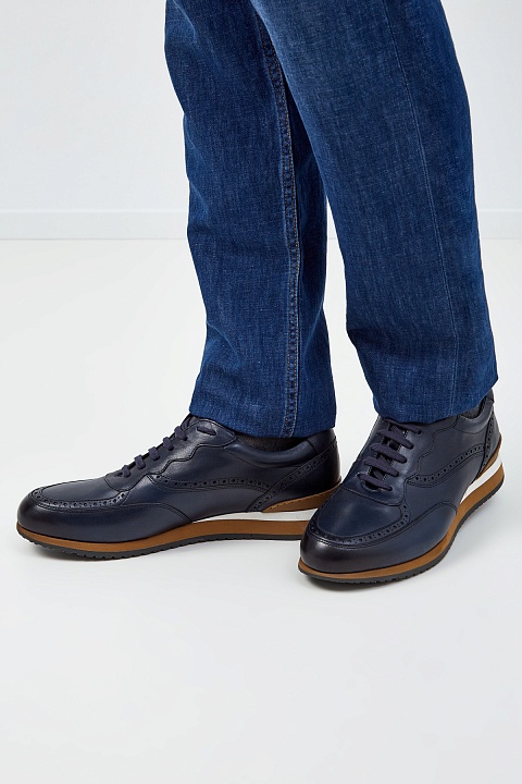 Кроссовки из матовой кожи с эффектом брогирования