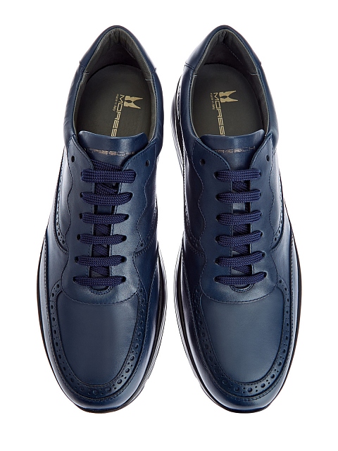 Кроссовки от Moreschi созданы из гладкой, отполированной вручную кожи. Динамичные линии граненого ранта дополнены элегантным верхом с брогированием. Внутри — подкладка и стелька из кожи для дополнительного комфорта. Детали: амортизирующая подошва, мягкие манжеты, шнуровка в тон. Сделано в Италии.