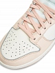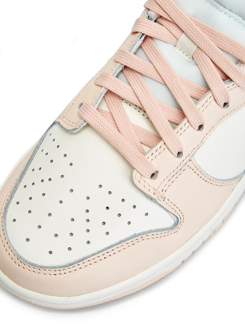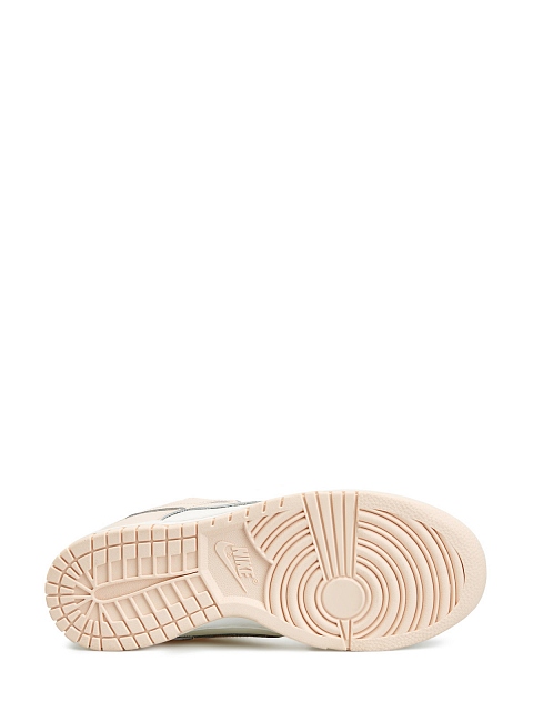 Кроссовки Nike Dunk Low Orange Pearl выполнены в пастельной расцветке, основой которой служит оттенок розового жемчуга. Изготовленные из кожи, кроссовки представляют классический колор-блокинг винтажного силуэта из 80-х: кремовая основа, обитая розовыми накладками. Брендинг Nike по традиции реализован в виде логотипа Swoosh по бокам, контрастной текстовой вышивки на пятке и патча на нейлоновом язычке. Кремовая подошва выполнена из резины с розовой подметкой.