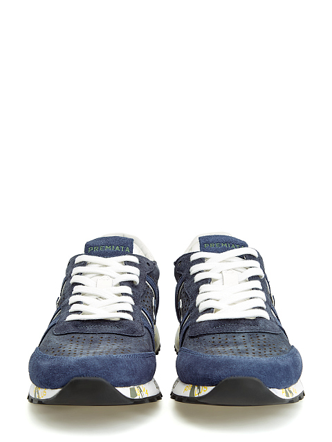 Стильные мужские кроссовки Eric в синей гамме от Premiata. Для создания модели была выбрана натуральная замша, а вставки из контрастной кожи расставляют фактурные акценты. Обувь ощущается максимально комфортно за счет сверхлегкой амортизирующей подошвы и перфорированного верха. Детали: контрастный язычок, принтованный рант, объемный логотип бренда.