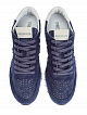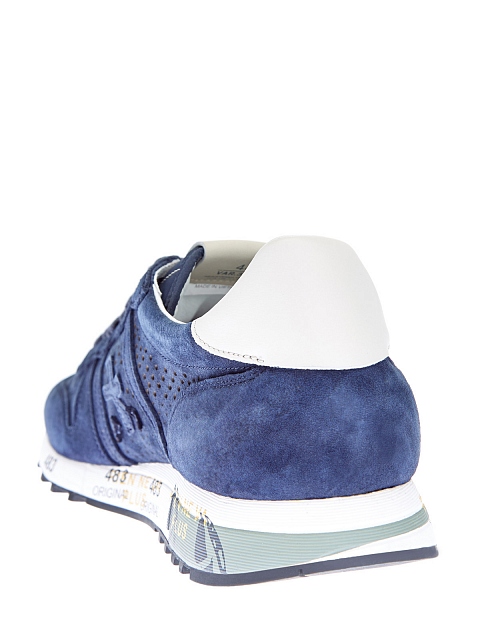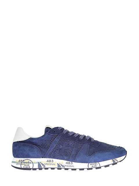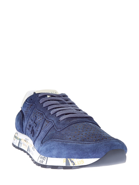 Однотонные кроссовки Eric от Premiata представлены в темно-синем оттенке. Для создания модели была выбрана натуральная замша, поглощающая свет текстура материала смягчает спортивные линии. Модель ощущается максимально комфортно за счет сверхлегкой амортизирующей подошвы и перфорированного верха. Детали: контрастный язычок, принтованный рант, объемный логотип бренда.