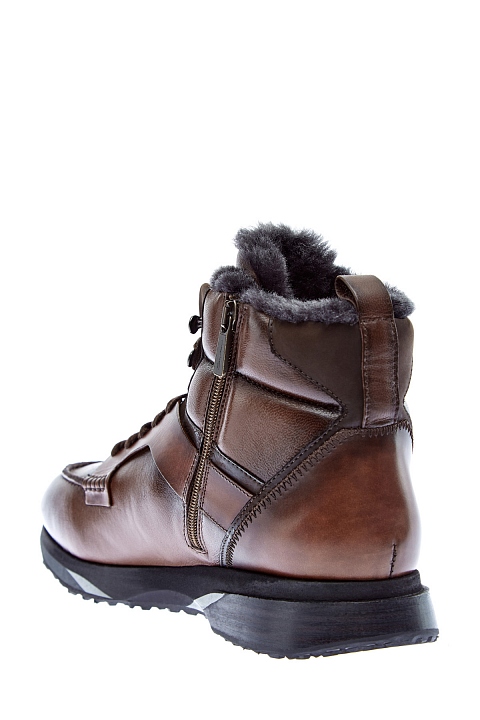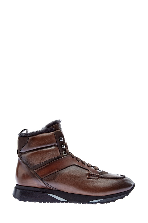 Высокие мужские кроссовки от Santoni выполнены из гладкой кожи с эффектом полировки и окрашены вручную. Двухслойная амортизирующая подошва дополнена рифленым протектором и светоотражающими вставками. Динамику образу придают массивные петли для шнуровки, а также шов на мыске, заимствованный у классических мокасин. Подкладка из овчины и высокие манжеты обеспечивают комфорт даже в условиях низких температур. Длина по стельке в размере 9.5 — 28.5 см. Сделано в Италии.