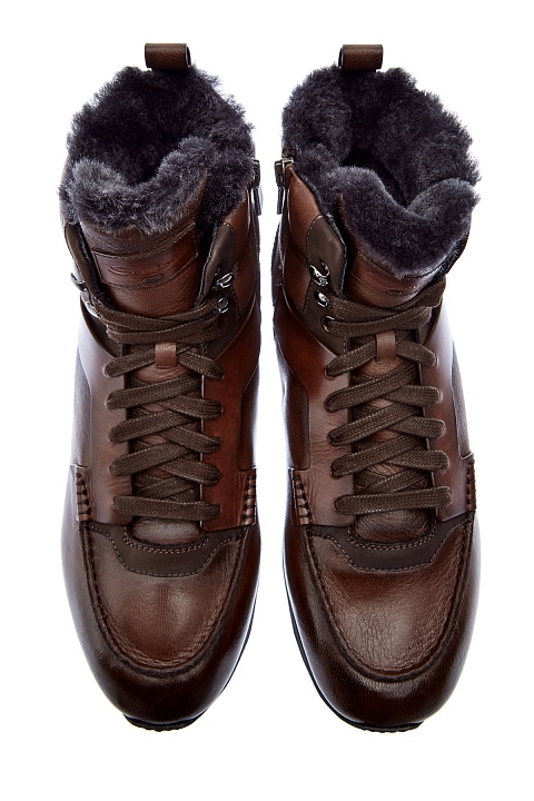 Кроссовки с мехом из окрашенной вручную кожи