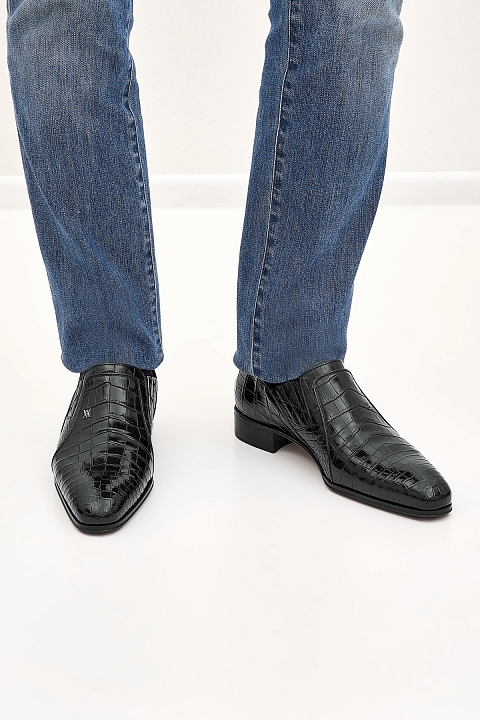 Высокие лоферы из текстурированной кожи аллигатора с квадратным мыском