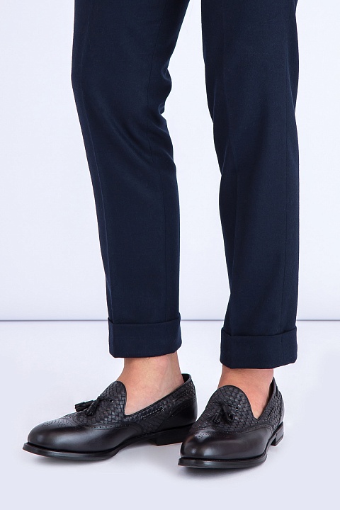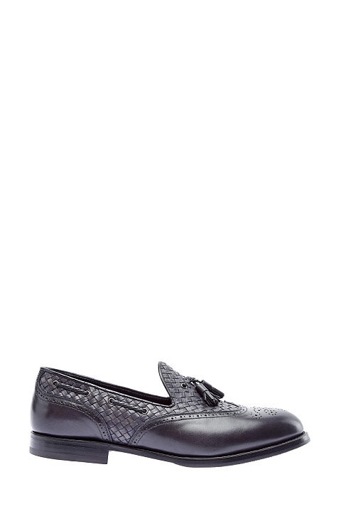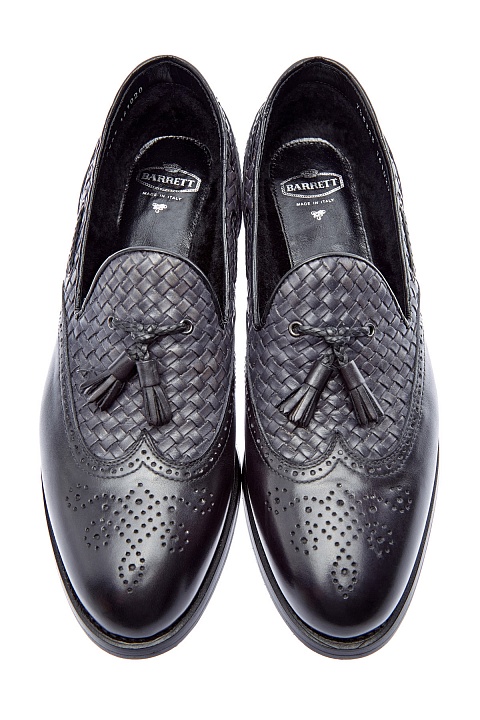 Эффектные мужские лоферы Barrett, в которых сочетается элегантность классического стиля и эффектные детали в виде плетенки из кожи, выполненной вручную. Модель изготовлена из мягкой телячьей кожи в традиционной итальянской технике Blake, когда внутренняя подошва, верхняя часть и внешняя подошва одновременно соединяются сквозной строчкой. Изделие декорировано узорным брогированием на мыске и объемным жгутом с кисточками. Внутреннее утепление натуральным мехом обеспечит защиту от низких температур. Произведено в Италии.