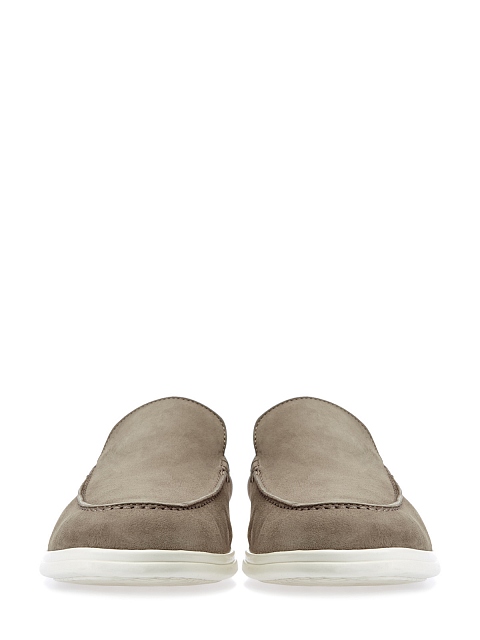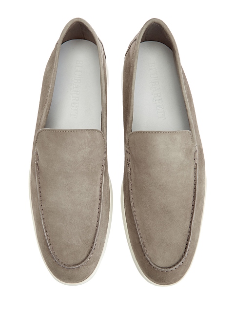 Минималистичные мужские лоферы от Barrett выполнены из фактурной замши и окрашены вручную. Бархатистая поверхность песочного оттенка делает образ более расслабленным. Внутренняя отделка из кожи обеспечивает максимальный комфорт. Контрастная белая подошва придает динамичный штрих повседневным аутфитам. Детали: противоскользящая подошва, объемный шов в тон, круглый мысок. Сделано в Италии.