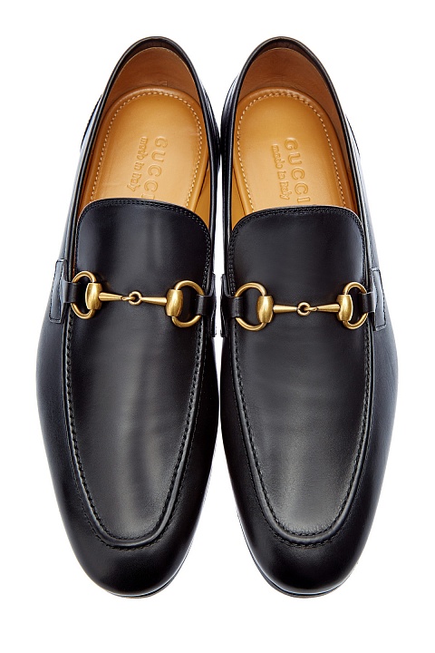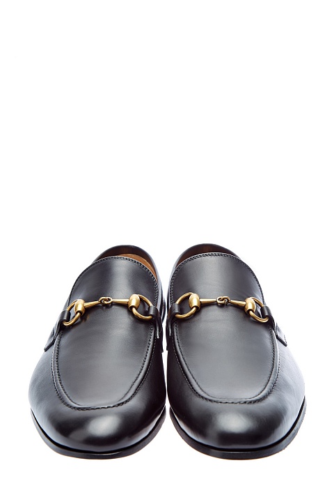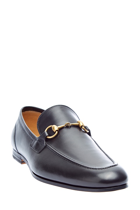 Лаконичные мужские лоферы от Gucci выполнены из гладкой кожи с глянцевым полированным эффектом по поверхности. Мысок дополнен объемным швом и фирменной отделкой Horsebit с покрытием под античное золото. Детали: подошва присоединена традиционным итальянским методом Blake, внутренняя отделка из кожи. Длина стельки для размера 9 составляет 28.5 см. Сделано в Италии.